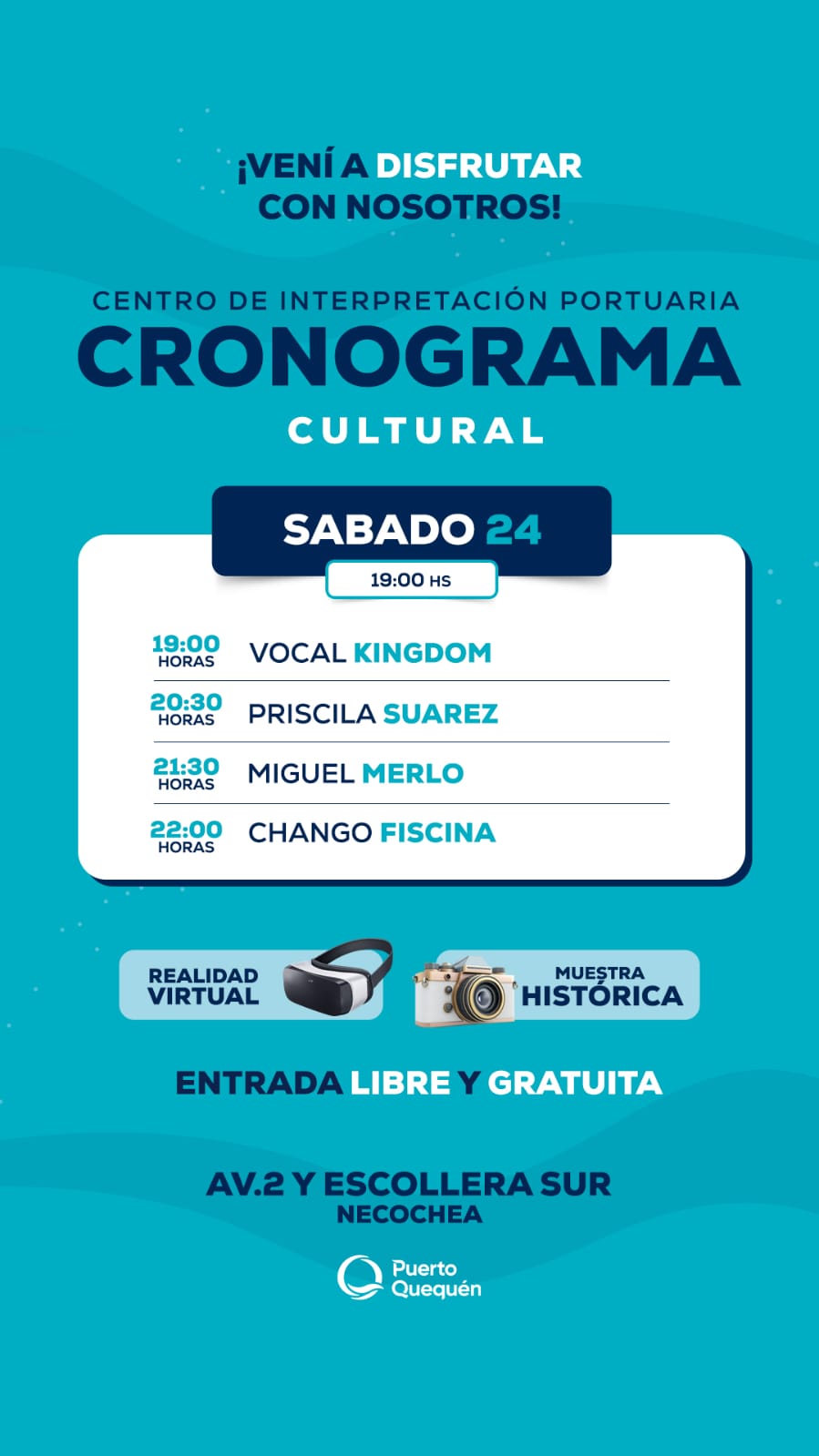 Se suman al cronograma cultural grupos de danza folclórica en vivo, la histori del puerto y las experiencias de realidad virtual relacionadas con el ámbito portuario.