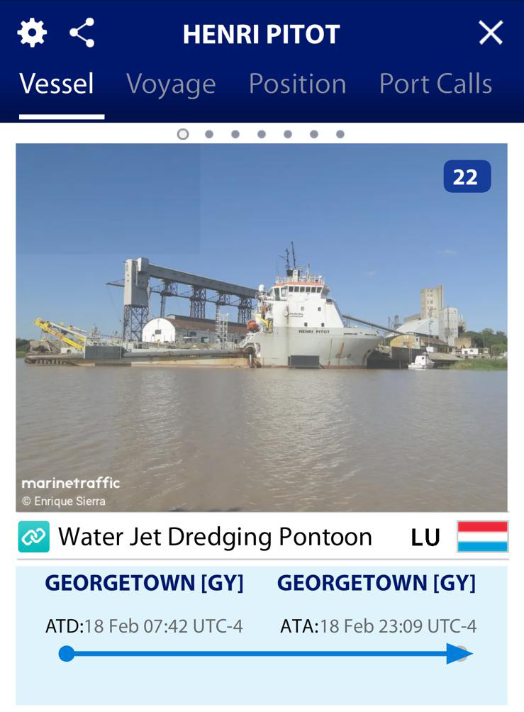 Jan De Nul, aun conociendo los pronósticos climáticos que anticipaban la sequía que vendría, envió la draga “Pitot” en enero de 2023 al puerto de Bahía Blanca y posteriormente a las cercanías de Georgetown, la capital de Guyana donde se encuentra actualmente.
